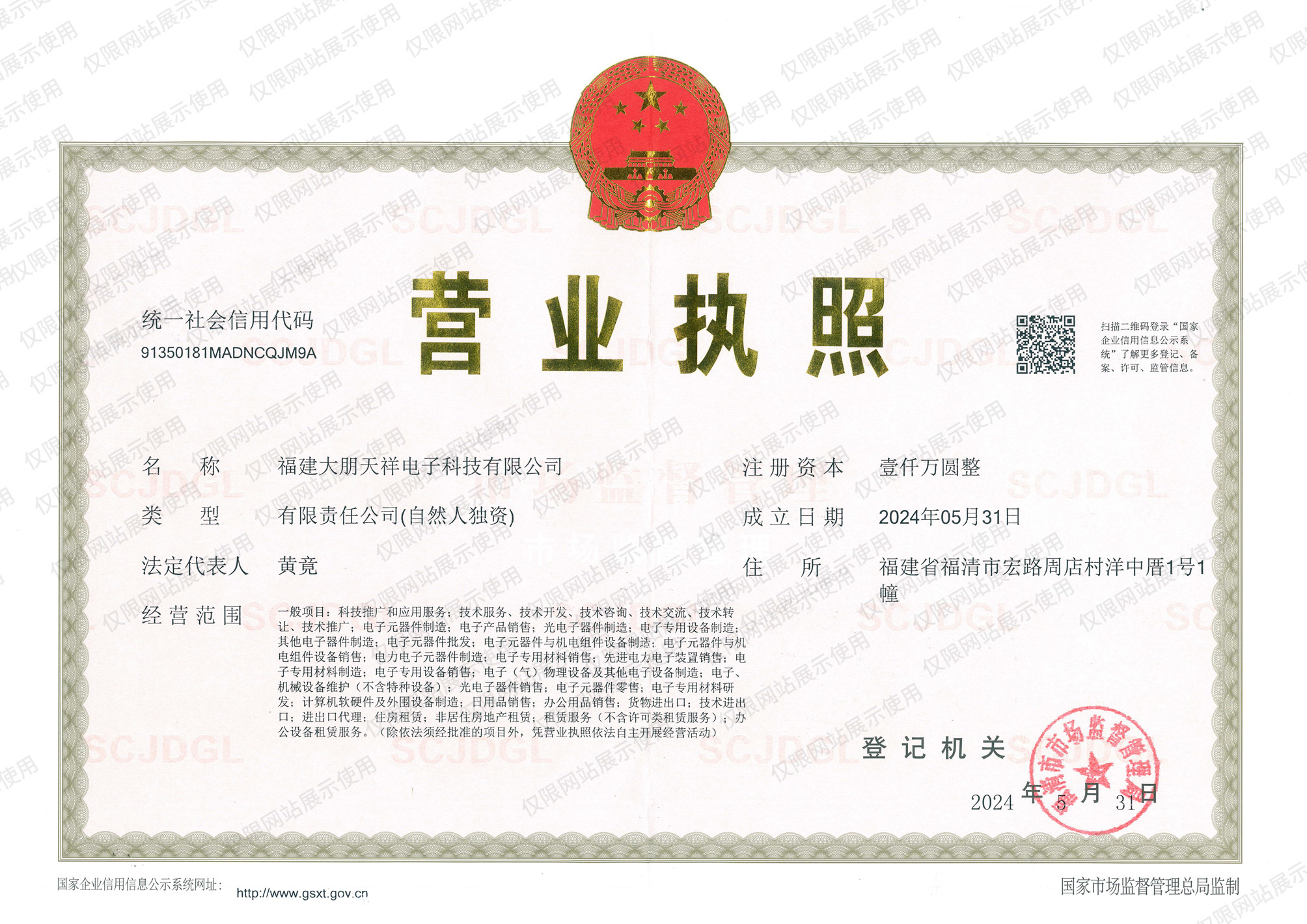 福建大朋天祥電子科技有限公司位于福建省福清市,創立于1993年,是一家專注于消費性電子及新質生產力行業連接線束的專業生產公司,2024年集團產業布局調整,創立福建大朋天祥電子科技有限公司,業務將逐步向新質生產力、無人機、軍工等領域擴展。工廠面積35000平方米,擁有多項發明專利。憑借多年生產、研發經驗及先進的生產設備,擁有多品類多項產品及認證,成為消費性電子產品及新質生產力行業制造大廠供應鏈體系中的一員,位居傳輸連接線產業地位。